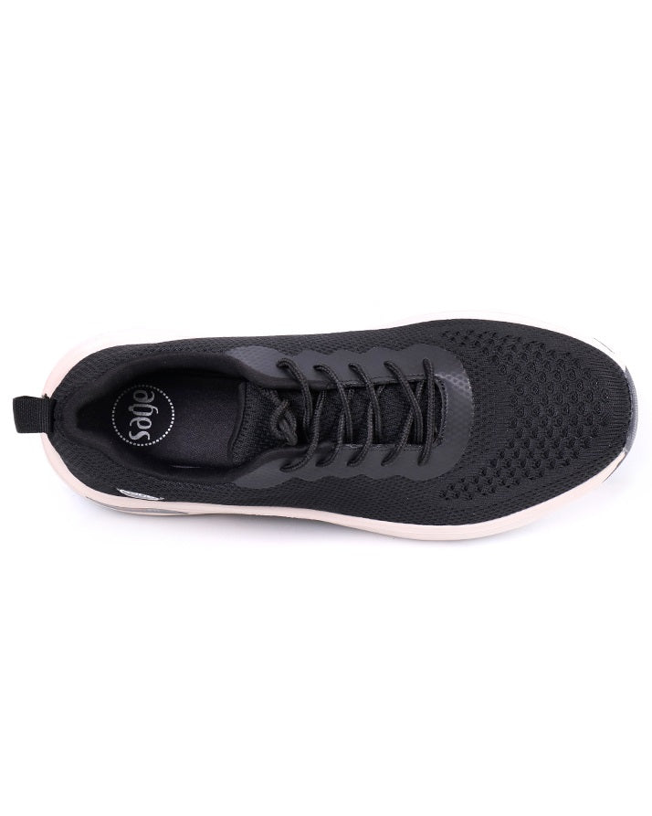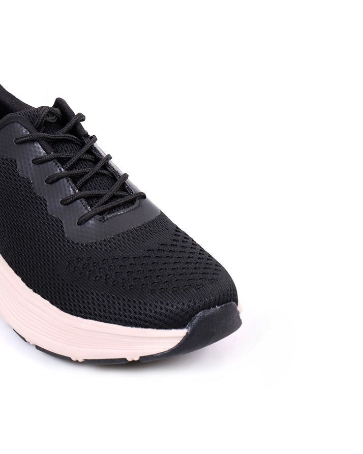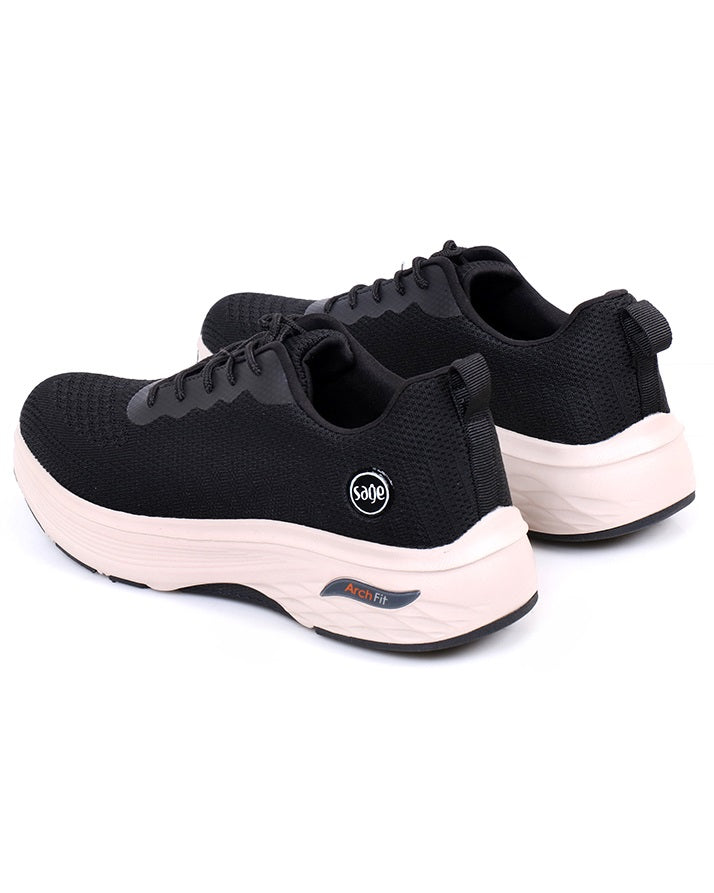 Black & beige lace-up Skechers sneakers for men. Comfortable and durable for casual, everyday wear.