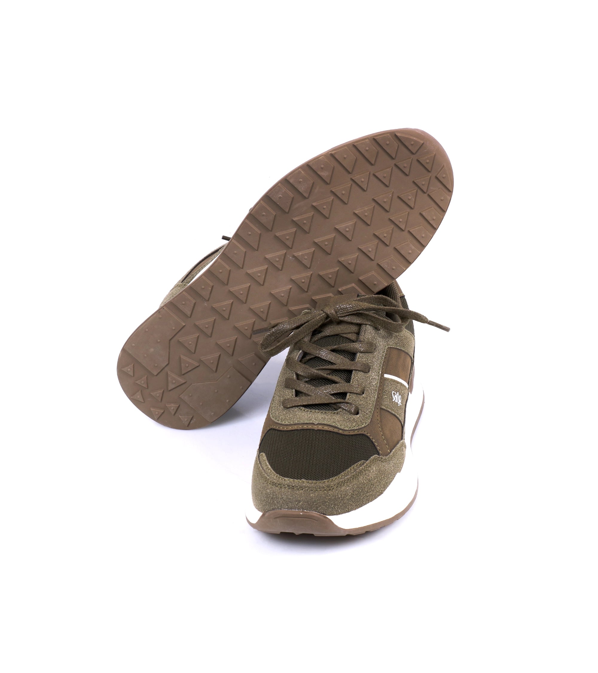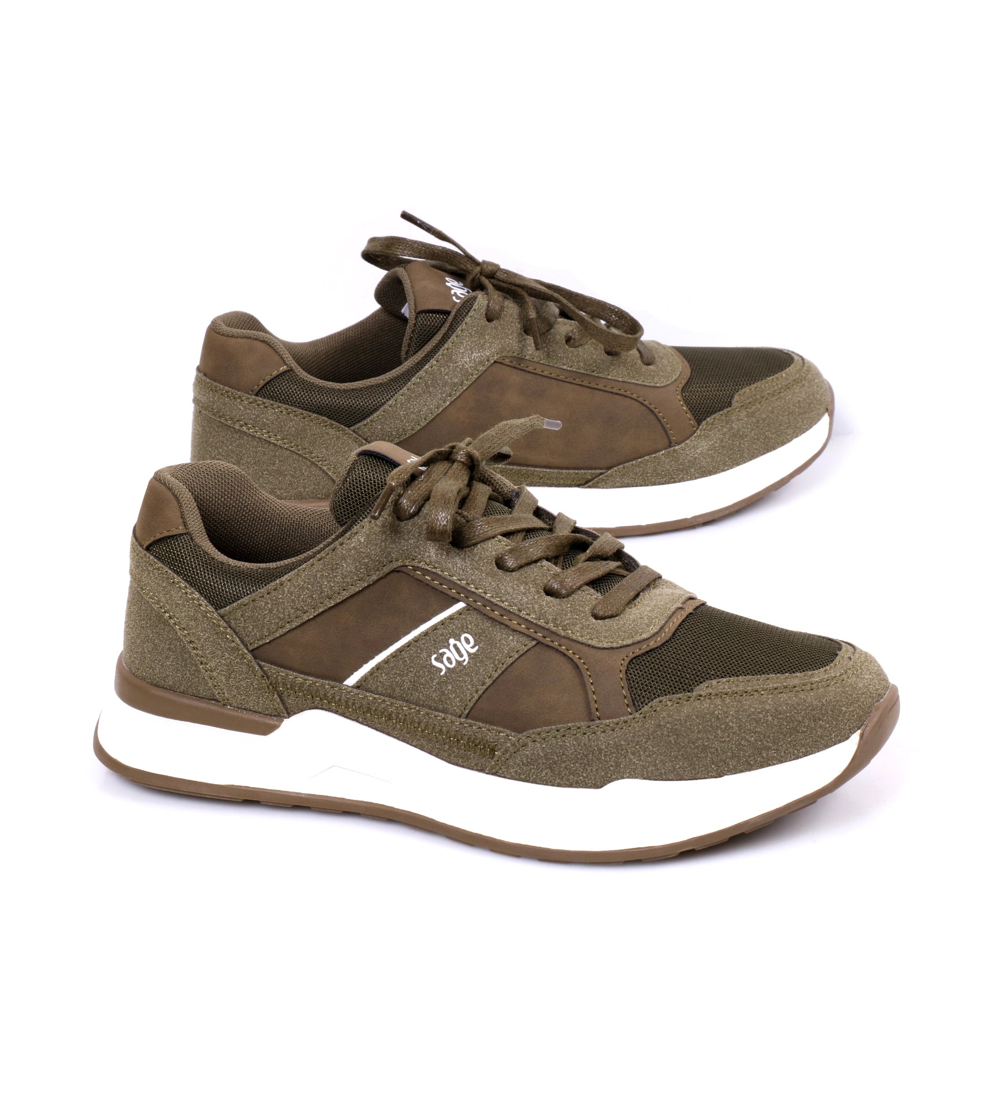 Khaki & navy blue Skechers sneakers. Lightweight, stylish, and comfortable for daily use.