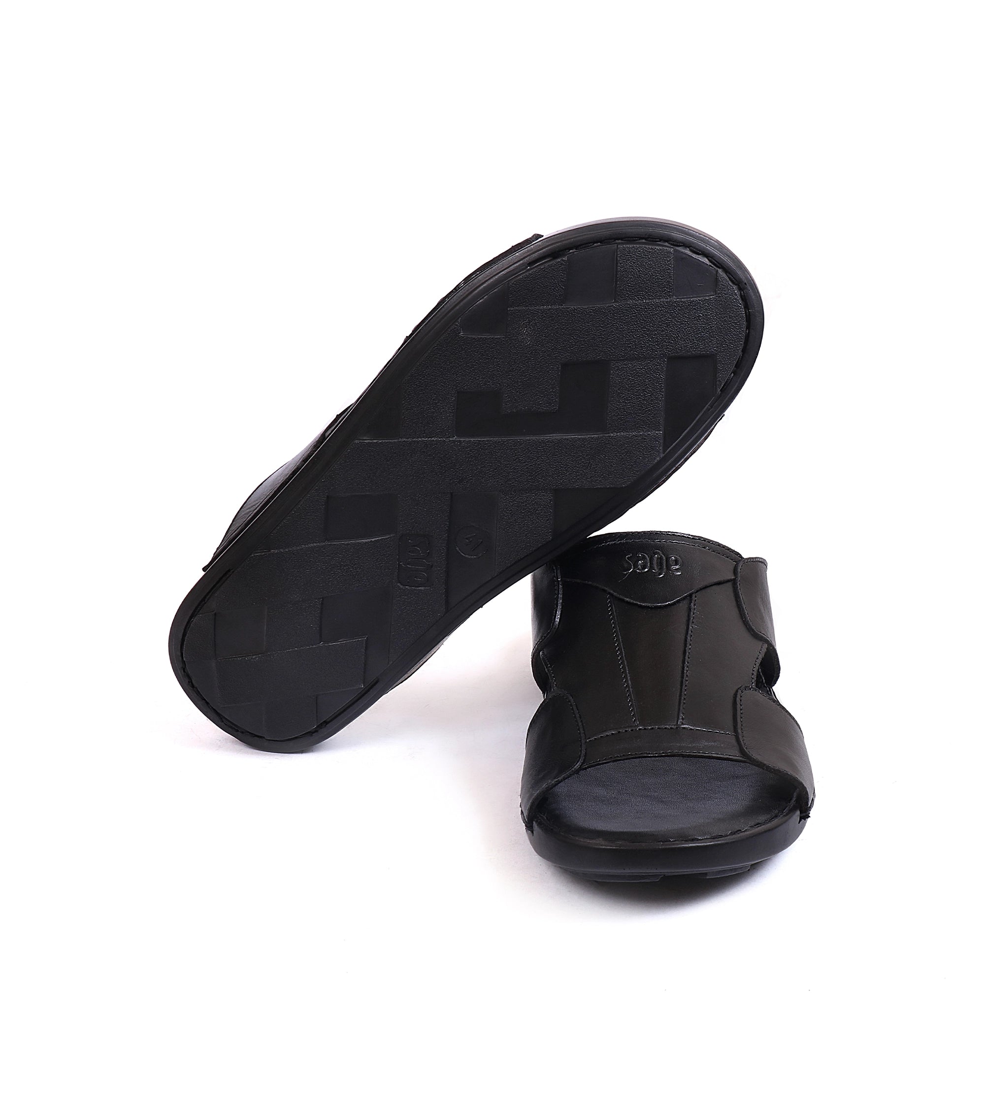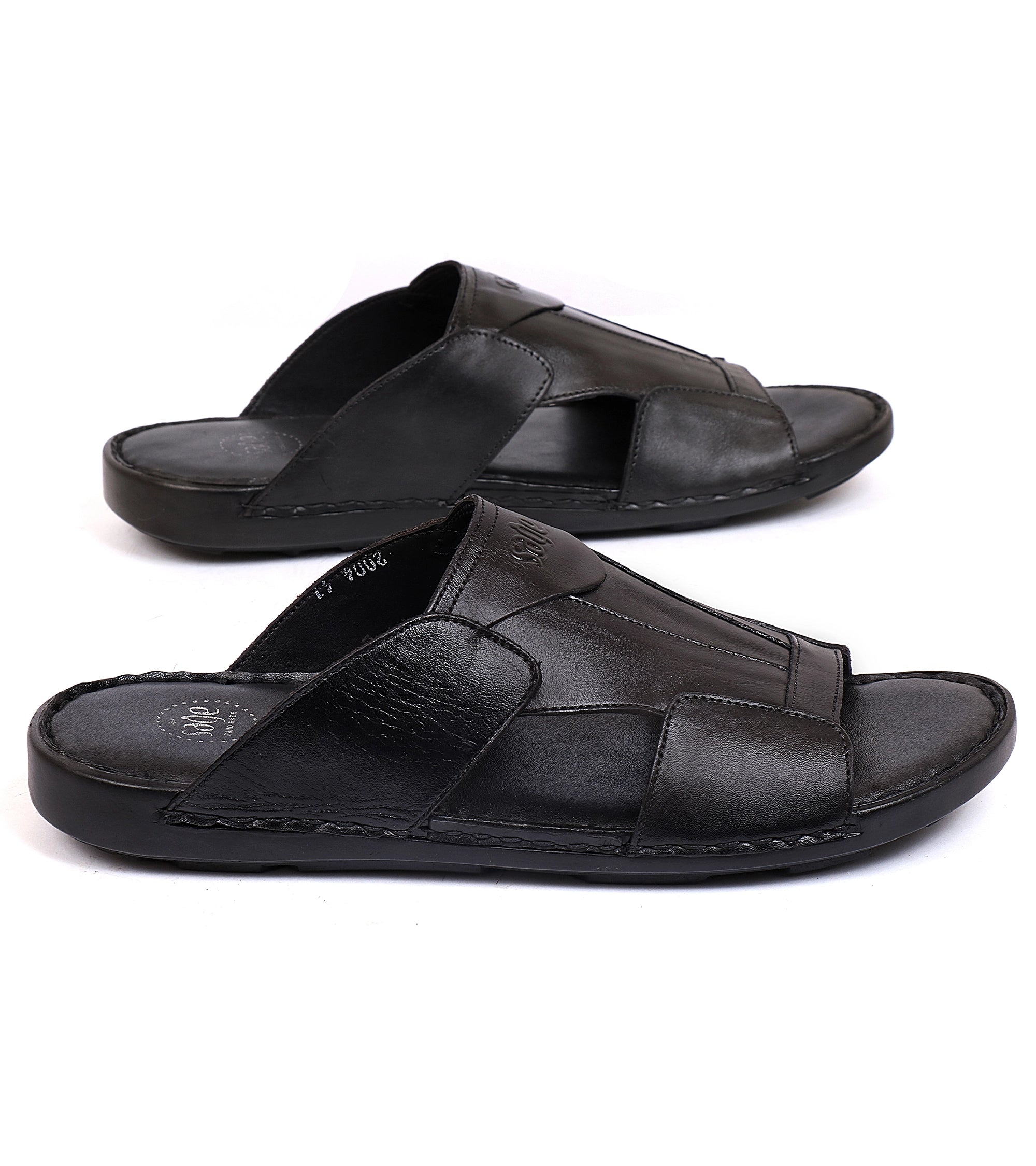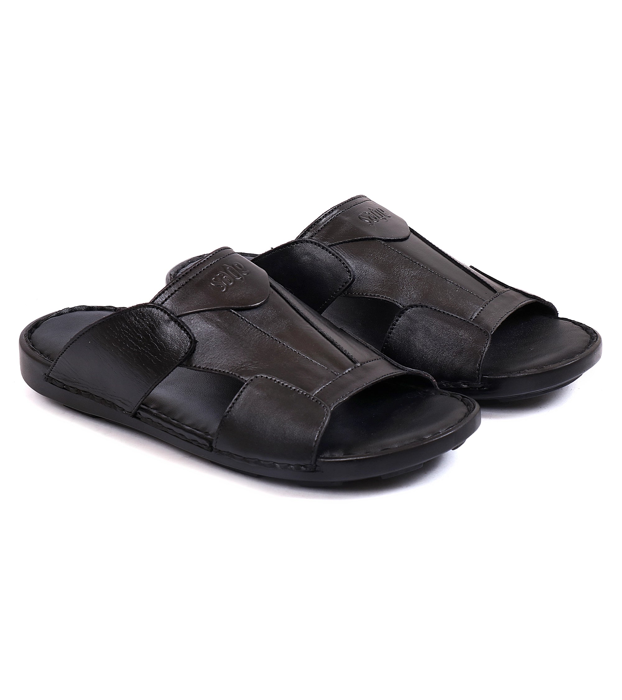 Black & coffee leather slippers. Comfortable, durable, with soft soles for all-day wear.
