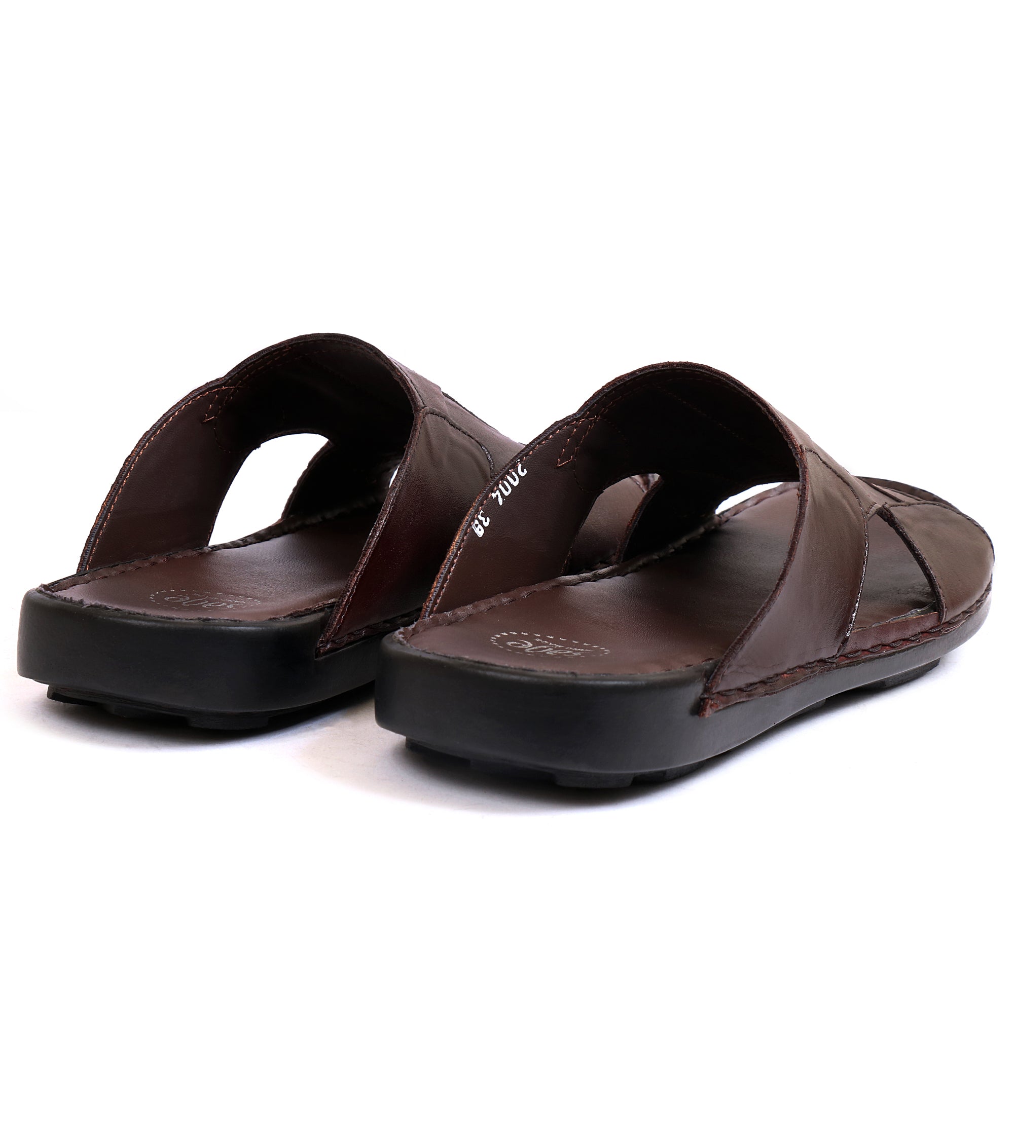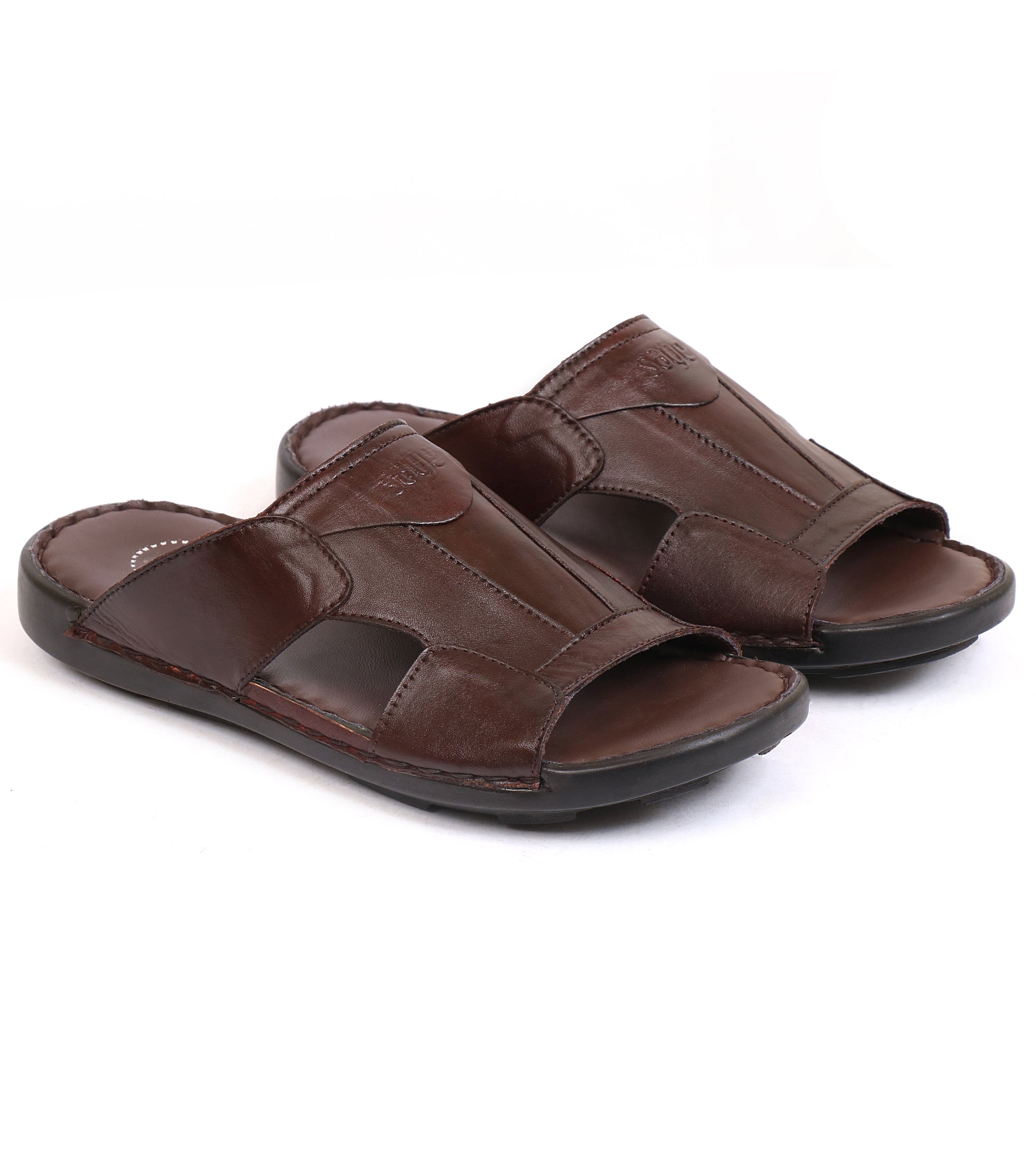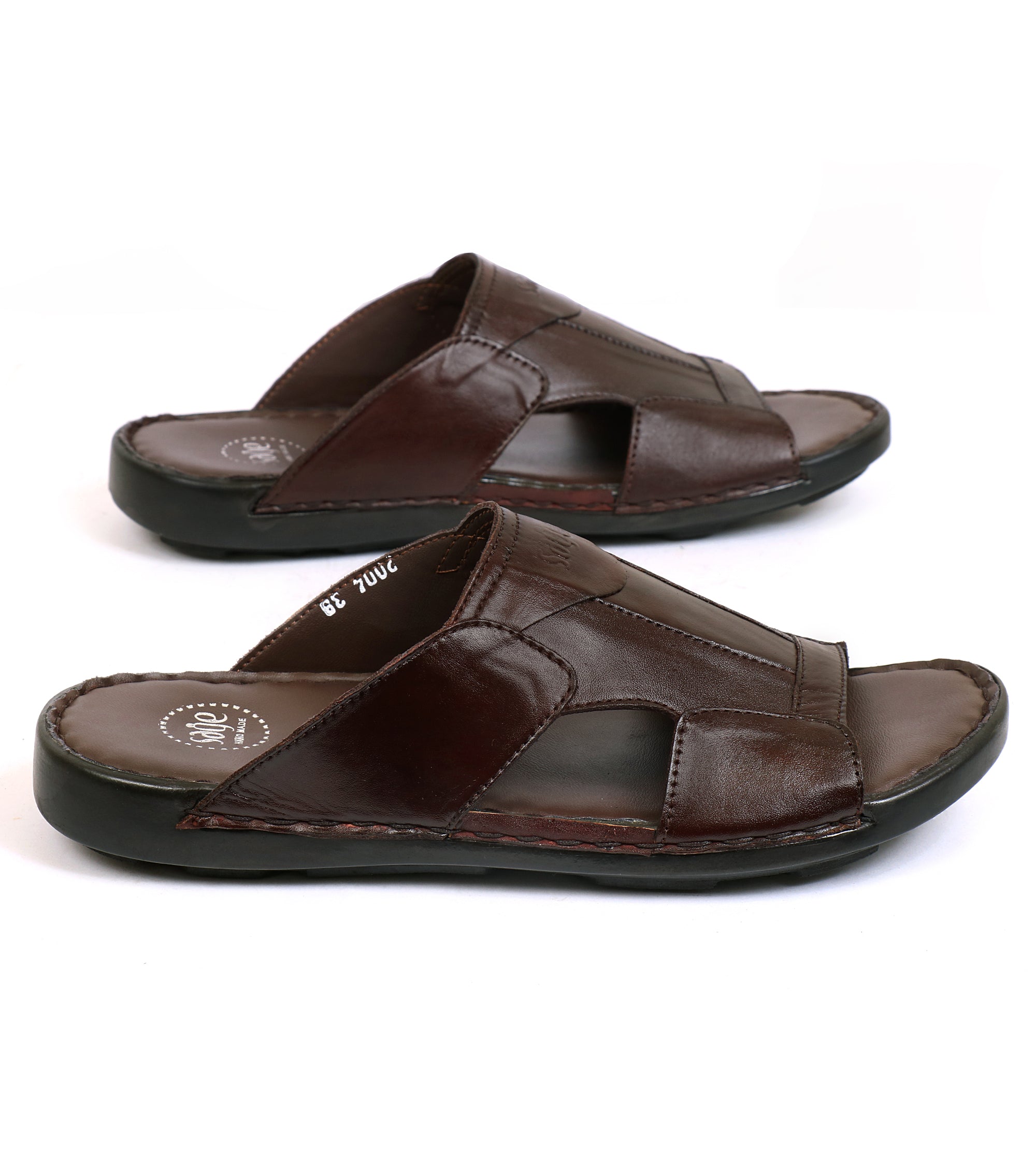 Black & coffee leather slippers. Comfortable, durable, with soft soles for all-day wear.