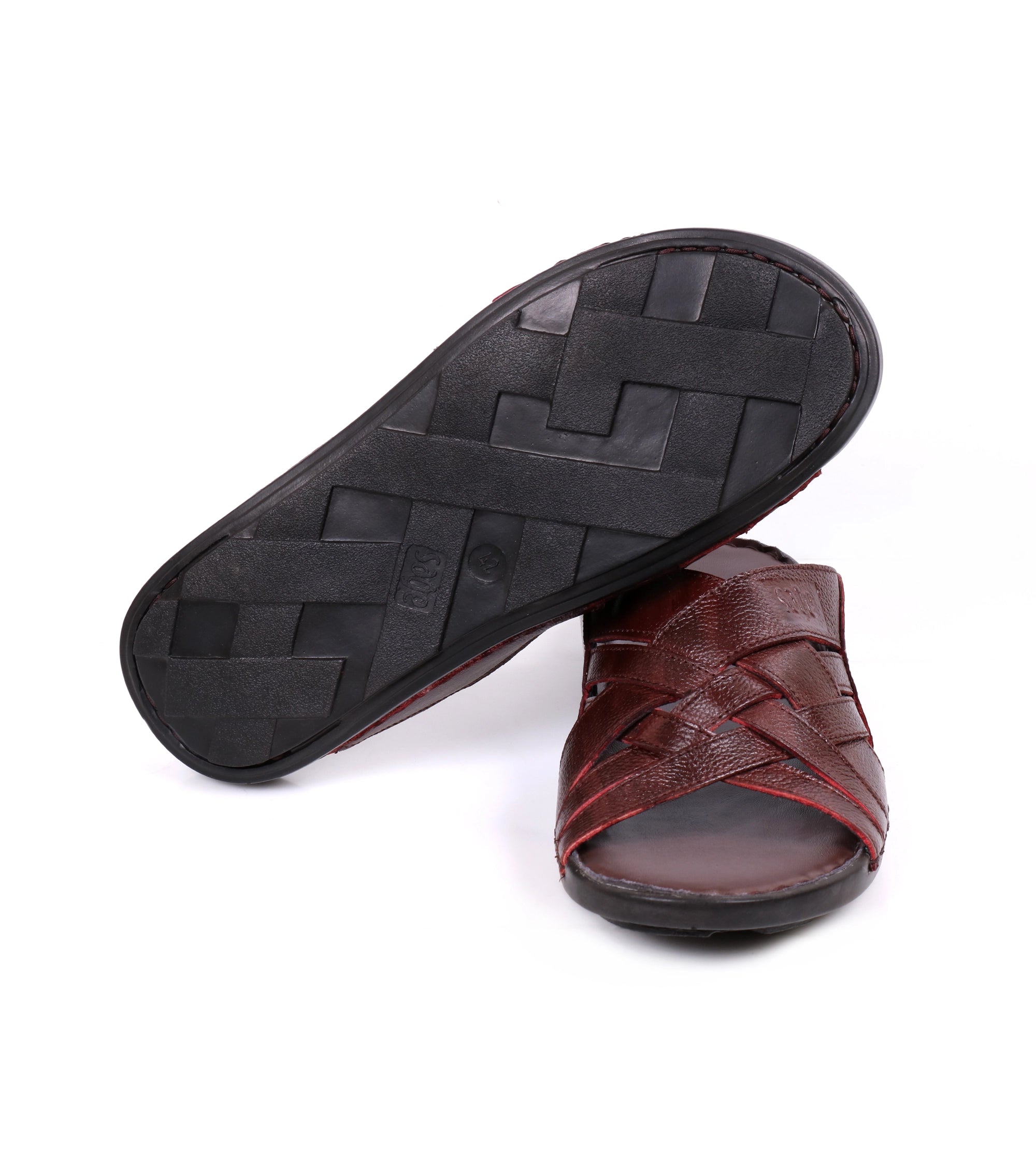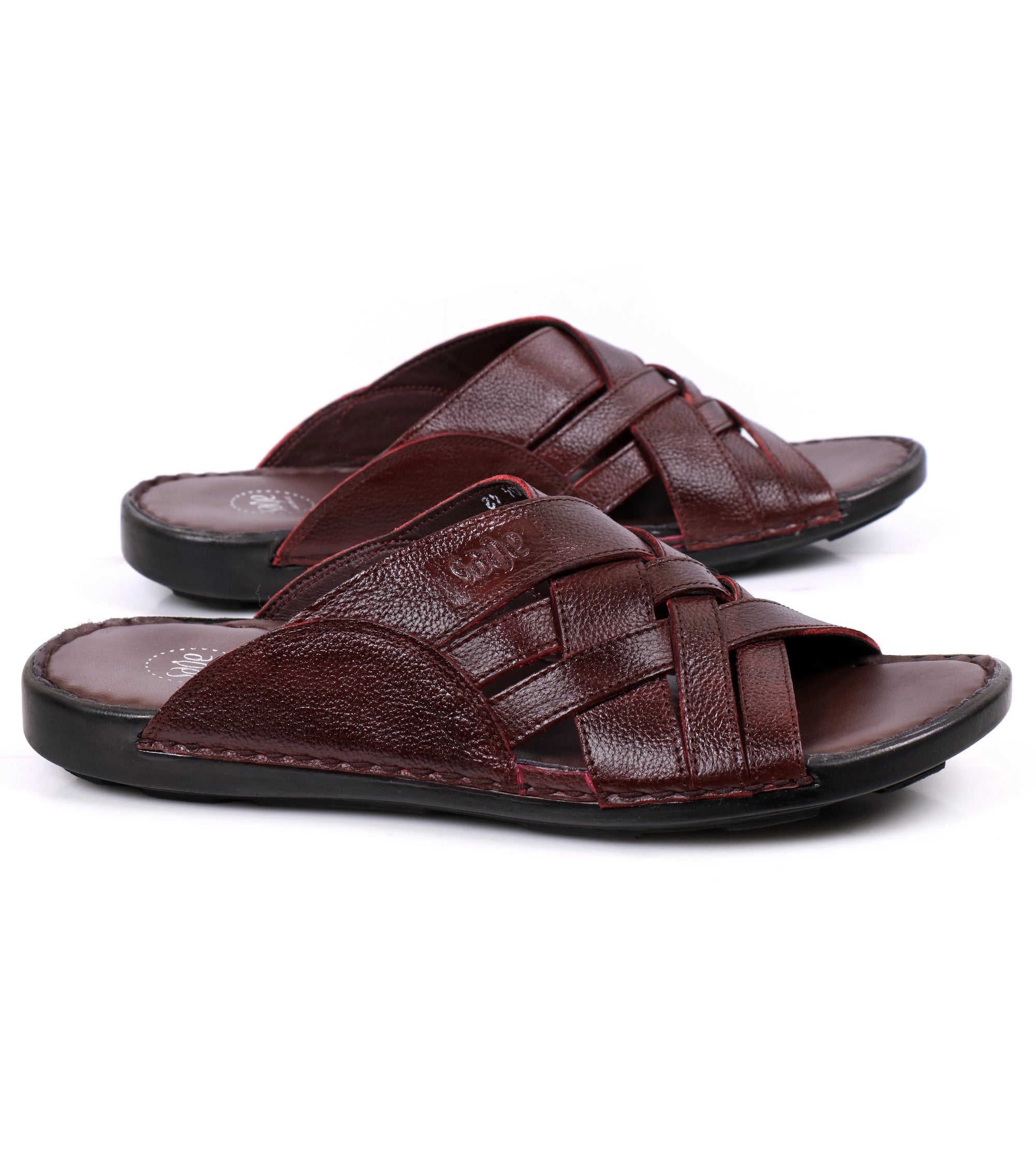 Premium burgundy-toned cow leather slippers with soft sheet sole and plush leather lining. Comfortable for home or casual outings, offering lasting style and all-day support.