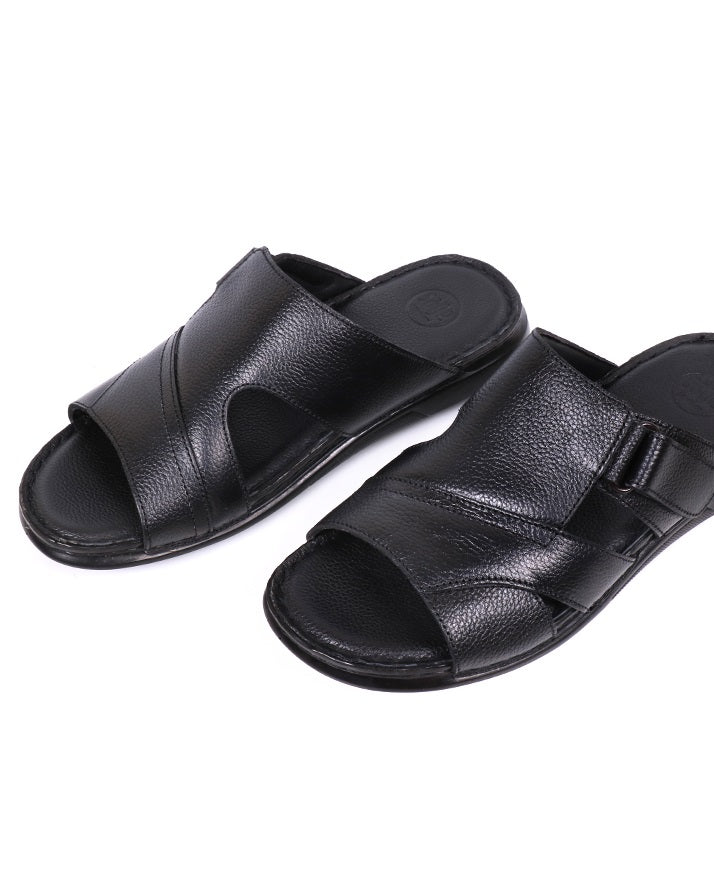 Premium black leather slippers crafted for comfort and durability. Lightweight PU sole ensures flexible movement, while the cushioned leather interior provides all-day comfort for casual or indoor wear.