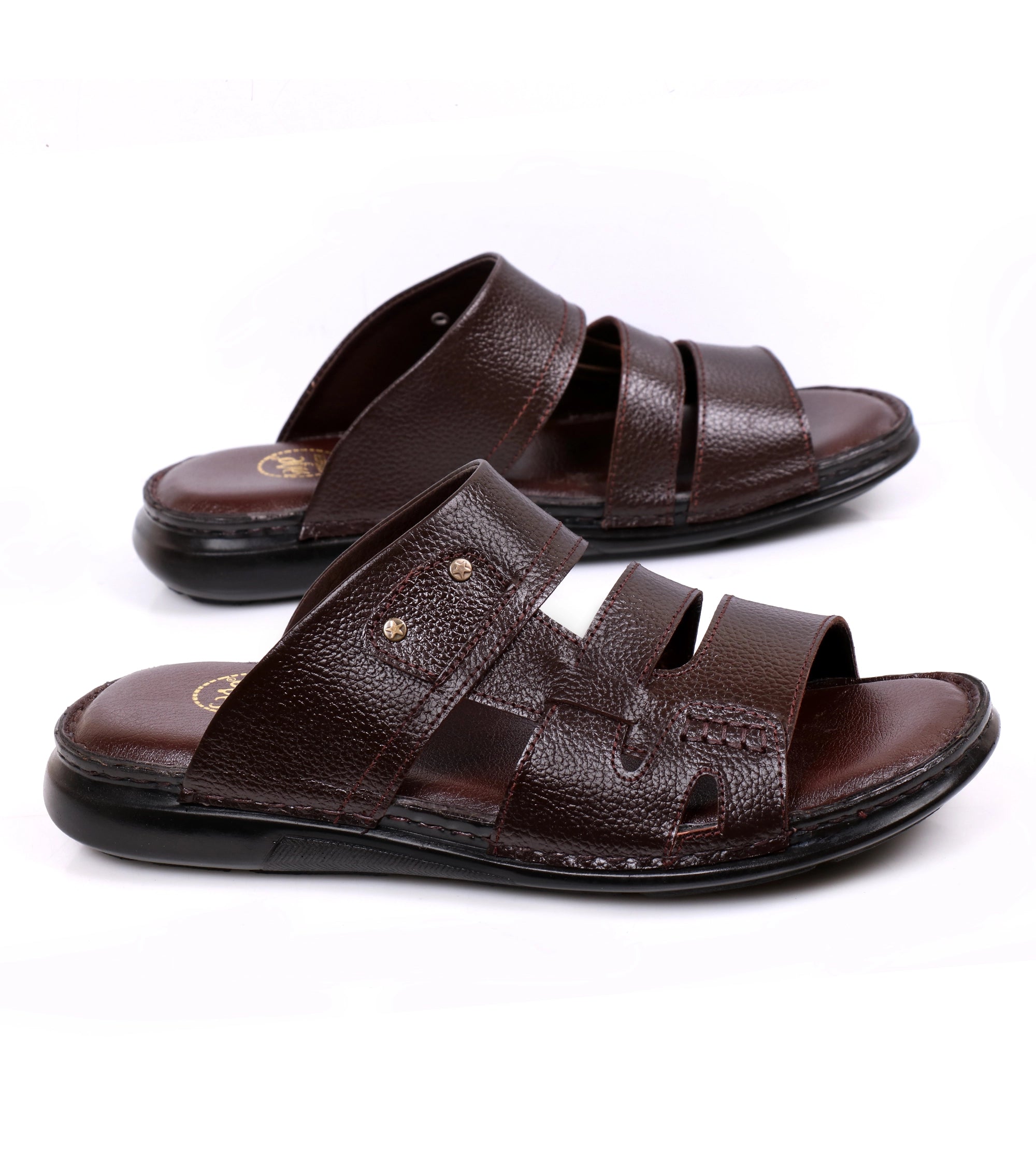 Rich brown leather slippers with premium cow milled construction. Soft lining and cushioned inner sole offer comfort, while the classic design ensures versatility for indoor or casual wear.