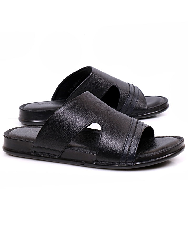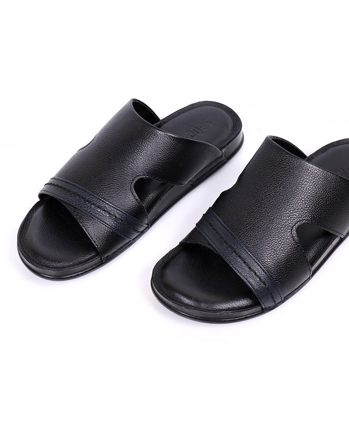 Premium leather slippers in black and chicu, crafted from high-quality cow leather with a soft leather lining and cushioned sole. Durable, stylish, and versatile, perfect for both indoor comfort and casual outdoor wear.