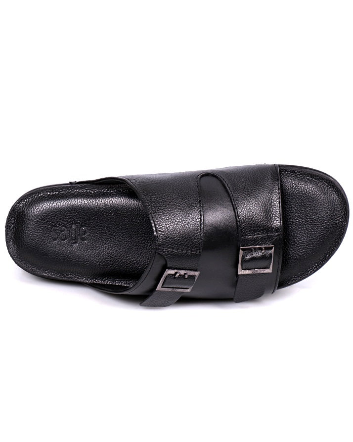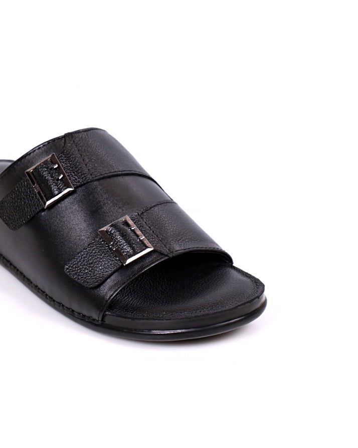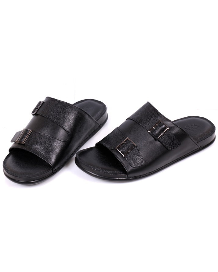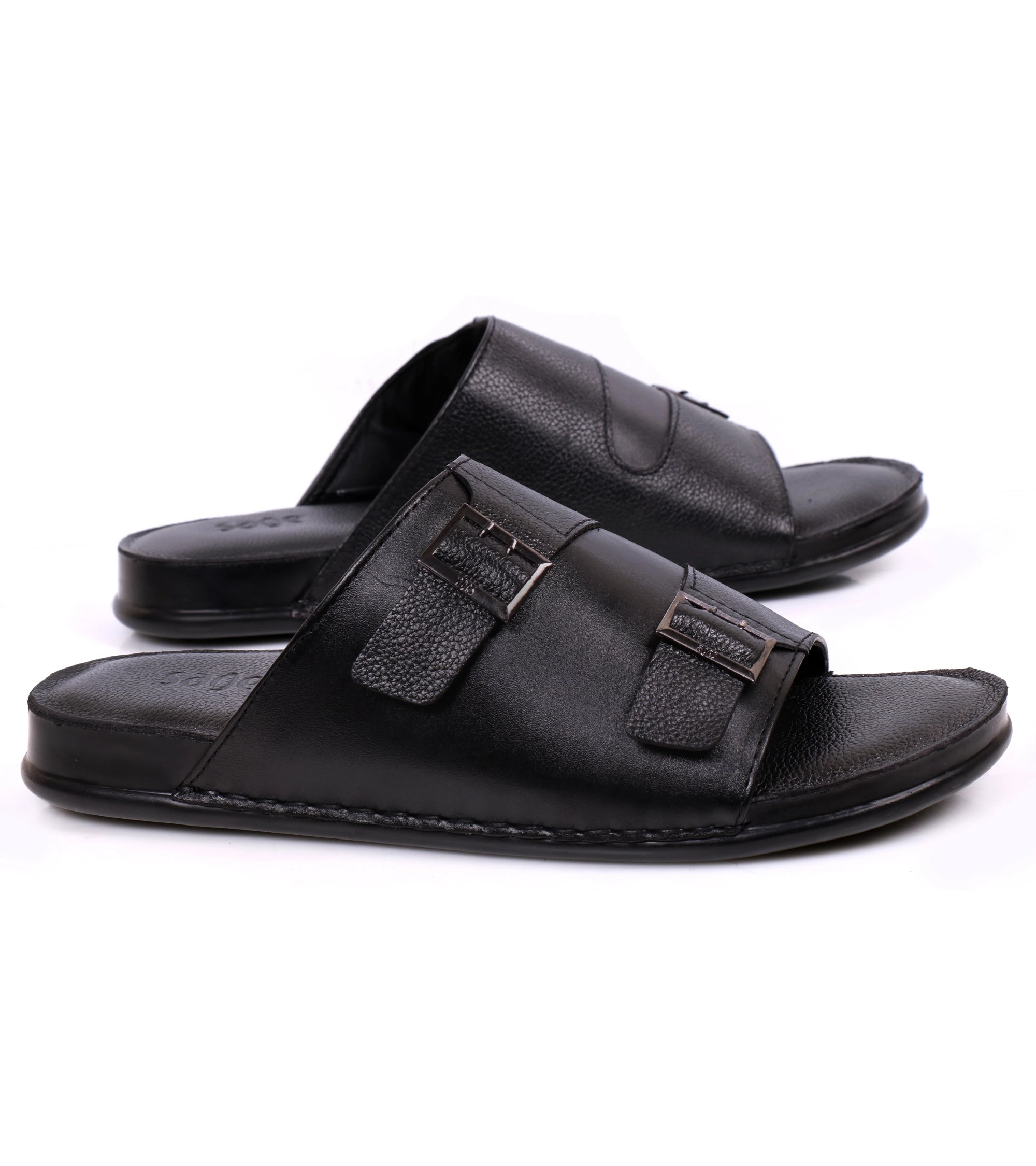 Timeless black leather slippers crafted from genuine leather with cushioned PU soles. Breathable and flexible, they are the perfect blend of elegance and everyday comfort for home or casual outings.