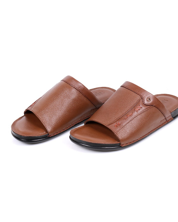 Upgrade your look with these brown leather slippers, crafted from premium leather with cushioned PU sole. Designed for comfort and timeless elegance, they are perfect for both casual wear and home lounging. A versatile wardrobe essential for men who value style and durability.