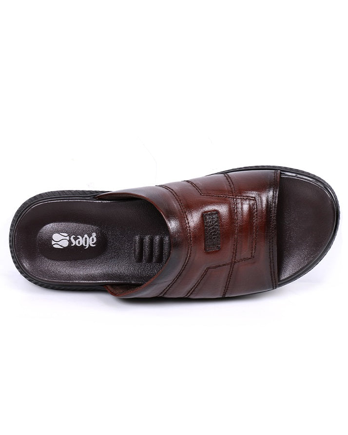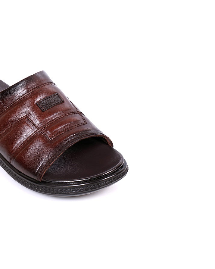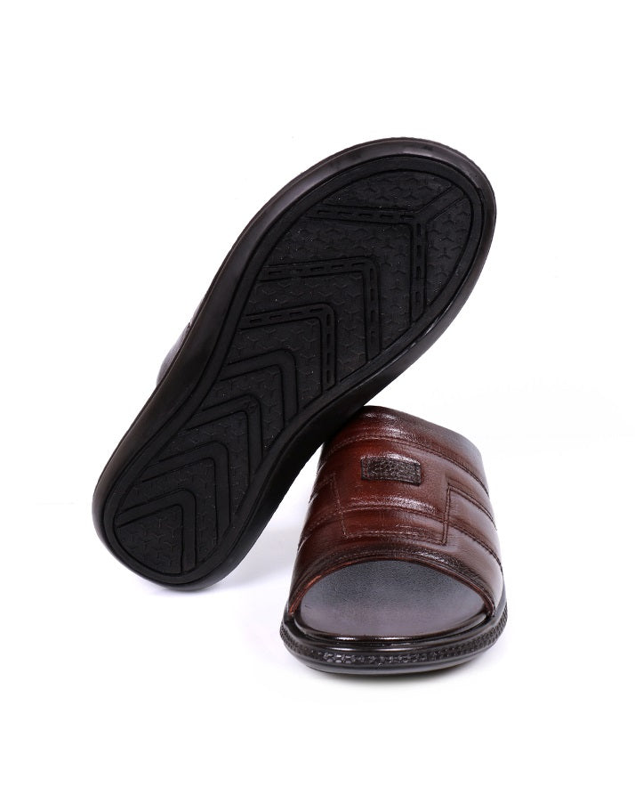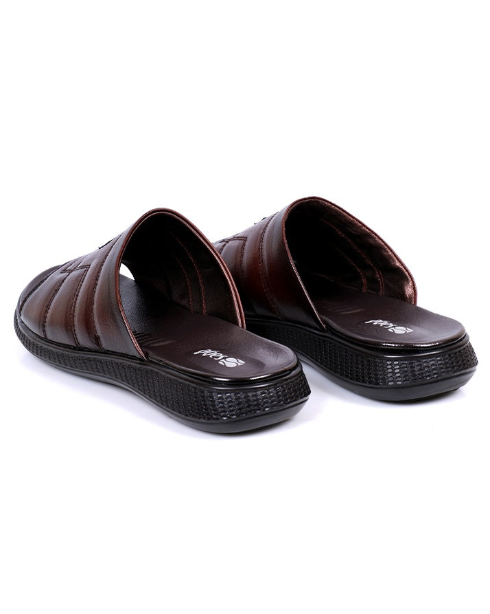 Brown leather slippers with black contrast for a stylish yet classic look. Made with soft lining and cushioned sole, they offer comfort and durability for daily wear.